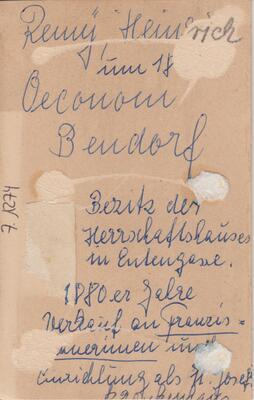 Schwarzweißfotografie. Dieses Portrait aus dem Jahr 1870 zeigt den Bendorfer Fabrikanten Heinrich Remy. Er bewohnte das herrschaftliche Wohnhaus in der Entengasse in Bendorf, das in den 1880er Jahren an die Franziskanerinnen verkauft wurde. Daraufhin entstand dort das alte Bendorfer St. Josef Krankenhaus, das 1962 abgerissen und durch einen Neubau ersetzt wurde. Das Wohnhaus war ursprünglich von Wilhelm Remy (1702-1761), dem Begründer des Eisenhüttenwesens in Bendorf erbaut worden.