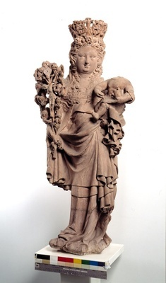 Bei diesem Gemälde fällt als erstes das nach 500 Jahren immer noch leuchtende, fein abgestufte Blau ins Auge, in dem der Mantel die Madonna mit dem Christuskind umhüllt: Es heißt, Lorenzo di Credi habe für jeden seiner bis zu 30 Blautöne einen eigenen Pinsel benutzt. Das einzigartige Ultramarinblau des Mantels wurde damals hergestellt aus dem kostbaren Mineral Lapislazuli. Lorenzo di Credi hatte einen großen Lehrer: Er war zusammen mit Leonardo da Vinci Meisterschüler bei dem Maler und Bildhauer Andrea del Verrocchio in Florenz. Die Madonna mit Christuskind entstand Ende des 15. Jahrhunderts, zur Zeit der Hoch-Renaissance, zu erkennen an der strengen Komposition und an der sehr genauen Darstellung von Licht und Perspektive. Ein wichtiges Element ist die entblößte Brust. Sie verweist auf die Bedeutung der Madonna als Mutter Christi und als Fürbitterin für die sündige Menschheit bei Gott. Das Licht fällt von links her ein. Zunächst streift es die Glasvase und macht sie durchsichtig. In der Vase blühen Rosen, Jasmin und Kornblumen: Diese Blumen sind Symbole der Jungfrau Maria. Dann modelliert das Licht den Körper des Kindes und das Gesicht der Madonna, und am Ende verzaubert es noch die Landschaft im Hintergrund. Das Wasser wird zum Spiegel, und wenn man genau hinschaut, dann sieht man aus dem Dunst gotische Kirchtürme aufsteigen. Die Madonna mit dem Christuskind befand sich einst in der Sammlung des "Sonnenkönigs" Ludwigs des XIV. in Versailles. Während der Französischen Revolution wurde sie beschlagnahmt und kam dann 1803 als so genannte "Beutekunst" nach Mainz.