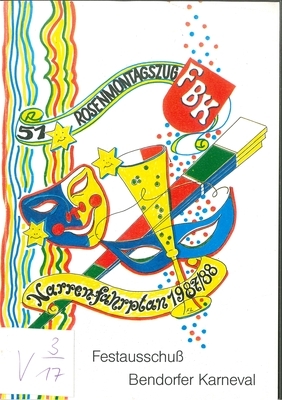 Broschüre herausgegeben vom Festausschuss Bendorfer Karneval 1951 e. V. mit dem Programm der Karnevalssession 1985, anlässlich des Jubiläums 3 x 11 Jahre Rosenmontag. Es sind Grußworte von Bürgermeister Dieter Trennheuser und dem Vorsitzenden des Festausschusses, Josef Schmidt enthalten. Das Redaktionsteam bestand aus Christel Weiss, Willi Goergen, Peter Linz und Josef Schmidt. Der Umschlag wurde von Fritz Lenz gestaltet und gedruckt wurde in der Druckerei Joh. Schwenkmezger. In der Broschüre sind neben dem Karnevalsprogramm viele Werbeanzeigen von örtlichen Geschäften, Firmen usw. abgedruckt.