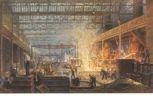 Kolorierte Zeichnung als Postkarte gedruckt. Das Motiv der Postkarte zeigt das Grusonwerk mit der Stahlgießerei der Friedrich Krupp A.G. Gußstahlfabrik in Essen. Das erste Grusonwerk in Magdeburg-Buckau wurde im Jahre 1855 von Hermann Gruson gegründet. Es war später Teil der Friedrich Krupp AG und entwickelte sich zu einem der bedeutendsten Maschinenbau- und Rüstungsunternehmen Deutschlands. Alfred Krupp war der größte Waffenproduzent seiner Zeit, was ihm den Beinamen Kanonenkönig einbrachte. Seine verbesserten Artilleriegeschütze trugen zum deutschen Sieg im Deutsch-Französischen Krieg bei.