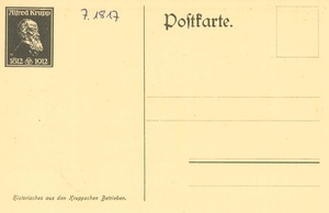 Schwarzweiß Holz(?)Druck als Postkarte gedruckt. Das Motiv der Postkarte zeigt die alten Stielhämmer der Friedrich Krupp A.G. Gußstahlfabrik in Essen im Jahre 1835. Als Nachfolger dieser Hämmer kam im Jahr 1852 der erste Dampfstielhammer zum Einsatz, gefolgt von dem Dampfhammer "Fritz", der am 16. September 1861 als der damals größte Schmiedehammer der Welt in Betrieb genommen wurde.