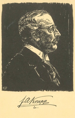 Schwarzweiß Holz(?)Druck als Postkarte gedruckt. Die Postkarte zeigt Friedrich Alfred Krupp im Seitenprofil und unterhalb des Bildes seine Unterschrift. Er ist am 17. Februar 1854 als Sohn von Alfred und Bertha Krupp in Essen geboren und verstarb ebenda am 22. November 1902. Friedrich Alfred Krupp wurde im Jahr 1887 nach dem Tod seines Vaters alleiniger Eigentümer der Friedrich Krupp A.G. Gußstahlfabrik in Essen. Von langfristig großer Bedeutung war die Errichtung des Stahlwerkes in Rheinhausen. F. A. Krupp erwarb im Jahr 1895 dort ein großes Grundstück zur Errichtung eines riesigen Hüttenwerkes mit Stahl- und Walzwerken. Die Gründung des Werkes in Rheinhausen war sein wichtigster Beitrag zur Entwicklung des Unternehmens zu einem Weltkonzern. Es wurde bald zu einem der modernsten und größten Roheisen- und Rohstahlwerke der Welt. Im Jahr 1904, als ein neuer moderner Hochofen in Betrieb ging und der Bau des Thomas-Stahlwerks begann, wurde das Werk in 'Friedrich-Alfred-Hütte' umbenannt. F. A. Krupp weilte häufiger auch in der Nähge von Sayn auf dem Jagdschloss Sayneck in Isenburg. Hier traf er sich zur Jagd mit Geschäftspartnern meist im November und weilte mit der Familie gerne im Sommer dort. Zitate von Friedrich Alfred Krupp (1854-1902) aus "Ralf Stremmel, in: Krupp und Sayn, 2015, S. 14-15, 16": „„Nach schwerem Kampf, wobei es fast zum Bruch mit Vater kam, habe ich gesiegt.“ Der Sieg, über den Friedrich Alfred Krupp 1882 jubelte, war ein dreifacher: Erstens willigte der Vater (Alfred Krupp) ein, dass der Sohn studieren konnte, zweitens akzeptierte er Margarethe von Ende als künftige Schwiegertochter und drittens regelte er für den Fall seines Todes, dass sein Sohn ihm als Alleininhaber und Chef der Firma nachfolgen sollte. Darum hatte Friedrich Alfred Krupp hart gerungen. Er wollte das Unternehmen führen und dies nicht nur widerwillig oder aus Pflichtgefühl, wie oft unterstellt. Aber richtig bleibt: Anders als der Vater hatte er weitgespannte Interessen außerhalb des Geschäftlichen und blickte immer über den Tellerrand der Gussstahlfabrik hinaus. „Meine zoologischen Studien habe ich wieder aufgenommen und interessiert mich ganz besonders das Mikroskopieren“ Intensiv verfolgte er die Entwicklung der Naturwissenschaften und betrieb selbst Meeresbiologie. Auf eigenen Forschungsfahrten und in Zusammenarbeit mit der weltberühmten Zoologischen Station in Neapel entdeckten er und seine Mannschaft im Mittelmeer neue Arten von Kleinlebewesen, die teilweise sogar nach Krupp benannt wurden. Mit Ernst Haeckel, einem der prominentesten Naturwissenschaftler seiner Zeit, initiierte er ein Preisausschreiben zur Übertragung der damals hochmodernen Deszendenztheorie auf die gesellschaftlichen Verhältnisse. Auch im Unternehmen forcierte Krupp die wissenschaftliche Grundlagenforschung - ganz im Gegensatz zum Vater, der theoretisches Arbeiten immer als Zeitvergeudung verurteilt hatte und einzig die Empirie, die Praxis gelten ließ. Friedrich Alfred Krupp erweiterte jedoch die Abteilungen für Forschung und Entwicklung massiv, so dass sein Unternehmen wieder zum innovativsten in der Metallindustrie aufrückte. Die Erfindung des nichtrostenden Stahls zehn Jahre nach Krupps Tod wäre ohne seine Investitionen wohl kaum möglich gewesen.“ […] „„Die Naturschönheiten von Sayn haben mich oft genug erfreut“ Relativ gesehen, verlor die Sayner Hütte im Krupp-Konzern stark an Bedeutung. Anfang des Jahres 1900 beschäftigte die Hüttenverwaltung noch 144 Leute, und das Bergrevier Sayn-Horhausen 893. Für Friedrich Alfred Krupp persönlich gewann der Ort Sayn jedoch außerordentlich an Wert. Seine Beziehung zu Sayn war emotional, nicht rational wie beim Vater. Das 1884 erworbene Jagdhaus Sayneck baute er bald um, ja neu, gewissermaßen zu einer Fluchtburg. Hierher reiste er im Sommer allein oder mit der Familie, und hierher lud er im Oktober/November regelmäßig Jagdgesellschaften ein. Sayneck eröffnete ihm die Möglichkeit, sich den Zwängen und Pflichten in Essen zeitweise zu entziehen. Es bot ihm Geborgenheit und Entspannung im Kreis von Gleichgesinnten. Sayn selbst profitierte ebenfalls, denn Schulen, das katholische Krankenhaus und mehrere Vereine erhielten von Krupp Zuwendungen, die sich seit den 1870er Jahren auf mehrere zehntausend Mark addierten.“