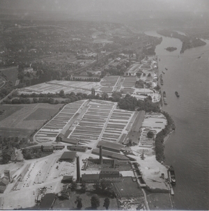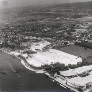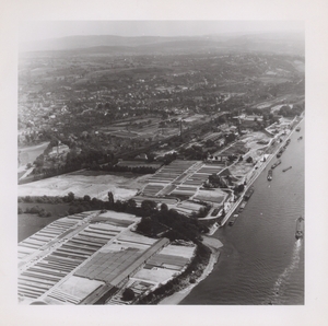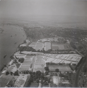 Hafen in Form eines verlängerten Herzens. Der Deckel hat zwei Handgriffe in Längs- u. Querrichtung. Am Hafen vorne und hinten ist je ein Griff. Die Außenglasur ist grau. Darauf aufgemalt ist ein Band aus bunten Blumen, die um den Rand des Deckels laufen. Das selbe Muster verläuft außen auf der Wandung des Hafens.