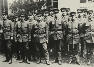 Im Waffenstillstandabkommen vom 11. November 1918 wurde die Besetzung der linksrheinischen Gebiete einschließlich der rechtsrheinischen Brückenköpfe um Mainz, Koblenz und Köln von den Siegermächten festgelegt. Im Dezember 1918 zogen die französischen Truppen in die Pfalz ein. Landau wurde am 1. Dezember besetzt und General Gérard schlug hier am 4. Dezember sein Hauptquartier auf. Die französischen Soldaten waren unter anderem in der nach Gérard benannten Kaserne untergebracht, die auf der Postkarte zu sehen ist. Bis 1929 entwickelt sich Landau zur größten französischen Garnison in der Pfalz mit 3800 Mann. General Gérard wohnte in Speyer und unterstützte die „Freie-Pfalz“, eine separatistische Bewegung des Landauer Chemikers Eberhard Haas. Dessen Anliegen war die Gründung eines autonomen Pfalz-Staates, der sowohl von Bayern als auch vom Deutschen Reich abgekoppelt sein sollte. General Gérard stand mit seiner Unterstützung in Konkurrenz zum ebenfalls im besetzten Rheinland stationierten französischen General de Metz. De Metz verhandelte mit Zentrumskreisen und unterstützte die Pläne Hans Adam Dortens zur Bildung einer autonomen Rheinischen Republik. [Vanessa Velikonja]