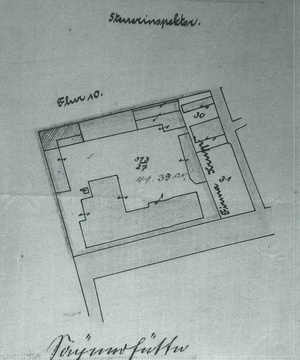 Schwarzweißfotografie. Diese Aufnahme aus dem Jahr 1906 zeigt einen handgezeichneten und kolorierten Lageplan, der im Zusammenhang mit dem sog. Krupp'schen Erholungsheimes in Sayn steht. Das aus Bruchstein errichtete Gebäude ließ Ferdinand Baron Bleul im Jahre 1839 als Maschinenfabrik und Gusswarenhandlung erbauen. Im Jahr 1872 verkaufte Ferdinand Bleul sein Unternehmen an die Firma Krupp, die zu dieser Zeit bereits Eigentümer der Sayner Hütte war. Anlässlich der Geburt ihres Sohnes Alfried stifteten Bertha und Gustav Krupp von Bohlen und Halbach den Angestellten der Krupp'schen Werke ein Erholungshaus in Sayn. Zu diesem Zweck wurden die Vordergebäude der ehemaligen von Bleul'schen Maschinenfabrik umgebaut und mit einer Terrasse versehen, die restlichen Fabrikgebäude wurden abgerissen und an deren Stelle eine Parkanlage angelegt. Bevor der Umbau begann musste ein Umzug der Maschinen in die neue, als Krupp'sche Halle bezeichnete Backsteinhalle auf dem Gelände der Sayner Hütte durchgeführt werden. Das Krupp'sche Erholungsheim für Werksbeamte wurde am 21. Mai 1909 eröffnet. Auf der linken Seite befand sich die Verkaufsstelle der Konsumanstalt, rechts wurde ein großer Speisesaal eingerichtet. 42 Einzelzimmer standen Erholungssuchenden zur Verfügung, dazu mehrere Aufenthaltsräume, ein Musikzimmer und die große Gartenanlage mit Wasserbecken, Springbrunnen und wasserspeiendem Eisbär. Während des Ersten und Zweiten Weltkrieges diente das Gebäude als Lazarett. 1952 verkaufte Krupp die Anlage an die Stadt Bendorf. Im Eingangsbereich des Gebäudes sieht man in dem Oberlicht über der Tür immer noch das Markenzeichen der Firma Krupp, die "Drei Ringe".