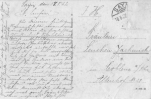Schwarzweißfotografie als Postkarte gedruckt und unten mit der Aufschrift "Krupp`sches Beamten-Erholungshaus Sayn" versehen. Diese Aufnahme aus dem Jahr 1922 zeigt die Garten- und Parkanlagen des Krupp'schen Erholungsheimes in Sayn. Das aus Bruchstein errichtete Gebäude ließ Ferdinand Baron Bleul im Jahre 1839 als Maschinenfabrik und Gusswarenhandlung erbauen. Im Jahr 1872 verkaufte Ferdinand Bleul sein Unternehmen an die Firma Krupp, die zu dieser Zeit bereits Eigentümer der Sayner Hütte war. Anlässlich der Geburt ihres Sohnes Alfried stifteten Bertha und Gustav Krupp von Bohlen und Halbach den Angestellten der Krupp'schen Werke ein Erholungshaus in Sayn. Zu diesem Zweck wurden die Vordergebäude der ehemaligen von Bleul'schen Maschinenfabrik umgebaut und mit einer Terrasse versehen, die restlichen Fabrikgebäude wurden abgerissen und an deren Stelle eine Parkanlage angelegt. Bevor der Umbau begann musste ein Umzug der Maschinen in die neue, als Krupp'sche Halle bezeichnete Backsteinhalle auf dem Gelände der Sayner Hütte durchgeführt werden. Das Krupp'sche Erholungsheim für Werksbeamte wurde am 21. Mai 1909 eröffnet. Auf der linken Seite befand sich die Verkaufsstelle der Konsumanstalt, rechts wurde ein großer Speisesaal eingerichtet. 42 Einzelzimmer standen Erholungssuchenden zur Verfügung, dazu mehrere Aufenthaltsräume, ein Musikzimmer und die große Gartenanlage mit Wasserbecken, Springbrunnen und wasserspeiendem Eisbär. Während des Ersten und Zweiten Weltkrieges diente das Gebäude als Lazarett. 1952 verkaufte Krupp die Anlage an die Stadt Bendorf. Im Eingangsbereich des Gebäudes sieht man in dem Oberlicht über der Tür immer noch das Markenzeichen der Firma Krupp, die "Drei Ringe".