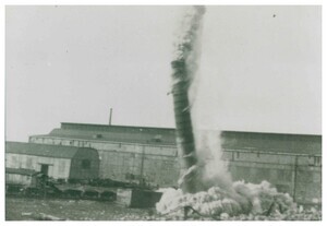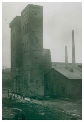 Schwarzweißfotografie. Diese Aufnahme zeigt eine Arbeitergruppe der Mülhofener Hütte. Die Expansion der königlich-preußischen Sayner Hütte erreichte ihren Höhepunkt mit der Errichtung eines Tochterwerkes in Mülhofen am Rhein 1855/56 nach Plänen von Karl Ludwig Althans. Hier verfeinerte er die Grundidee der Eisenkonstruktion eines Hochofens, „indem er auch den Kernschacht auf gusseiserne, von gusseisernen Säulen getragene Kranzringe stellte und so auch das mit Eisen verankerte Ofengestellt von allen Seiten zugänglich, durch Wasserkühlung erhaltbar und reparaturfähig machte. Das diese Ausführung den neueren Anlagen zum Vorbild gedient hat, wird unvergessen sein“. Im Jahre 1865 erwarb der Essener Fabrikant Alfred Krupp (1812-1887) die Sayner Hütte mit Oberhammer, die unmittelbar am Rhein gelegene Mülhofener Hütte und die Horhauser Erzgruben (Gruben „Georg“, „Luise“ und „Friedrich-Wilhelm“). Es wurden drei neue Hochöfen mit einer Tagesleistung von je 35 Tonnen Roheisen unter einem Kostenaufwand von 650 000 Talern erbaut. Später folgte noch ein vierter. Durch den weiteren Ausbau und die Modernisierung wurde die Tagesleistung der vier Hochöfen schließlich auf 300 Tonnen gesteigert. Lange Zeit hat die Mülhofener Hütte in der Versorgung der Gussstahlfabrik mit Roheisen eine bedeutende Rolle gespielt. Noch zu Lebzeiten von Alfred Krupp zeigte sich jedoch, daß die Krupp-Hüttenbetriebe den wirtschaftlichen Anforderungen nicht mehr entsprachen. Die weite Entfernung von Essen erforderte sehr hohe Frachtkosten. Die Betriebseinrichtungen waren veraltet, und der Roheisenbedarf für die Massenfabrikation stieg erheblich an. Das großzügige und neuzeitliche Hochofenwerk in Rheinhausen lieferte ab Ende 1897 das gesamte für die Gußstahlfabrik und die Außenwerke erforderliche Roheisen. Nur für die Erzeugung von Spezialroheisensorten, wie Qualitäts- und Puddeleisen, sowie für Spiegeleisen und Ferromangan, blieb die Mülhofener Hütte bestehen. Außerdem stellte sie aus Hochofenschlacke Schlackenwolle her. Die Mülhofener Hütte wurde am 6. Juni 1930 stillgelegt. Heute befindet sich auf dem Gelände die Firma Kann Beton GmbH.