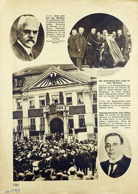 Paul von Hindenburg, damaliger Reichspräsident der Weimarer Republik, besuchte im Juli 1930 die von der Besatzung befreiten linksrheinischen Gebiete. Am 19. Juli traf er in Speyer ein, wovon die Wochenpost vom 3. August 1930 berichtet. Die Bilder zeigen wie er mit dem Auto vom Altpörtel aus durch die Hauptstraße, die mit Blumen und Fahnen geschmückt ist. Diese ist mit jubelnden Menschen gesäumt. Zu Ehren seines Besuches gab es Glockengeläut, Musik und Ansprachen. Er besuchte den Dom und hielt eine Ansprache vom Balkon des Rathauses aus und dankte, laut Wochenpost, den Pfälzern für die „dem Vaterland bewiesene Treue“. Bereits in der Nacht vom 30.6. auf den 1.7.1930 und am 1. Juli 1930 feierte die Speyerer Bevölkerung die „Rheinlandbefreiung“. Das Ende der Besatzungszeit wurde von fast allen Pfälzern entgegengesehnt. Am Rande der Befreiungsfeiern, am Abend des 1. Juli, fanden kriminelle Ausschreitungen in Kaiserslautern statt. Am Abend des 30. Junis hatten sich Menschenmasse auf dem Speyerer Domplatz, zwischen dem Domgarten, dem Bischöflichen Palais bis hin zum Museum versammelt und hielten Kerzen und Lichter. Auf der Tribüne neben dem Regierungsgebäude saßen hohe Beamte der bayerischen Landesregierung und weitere politische Akteure. Um Punkt 12 Uhr schlug die Glocke des Domes 12 Mal und die Fassade des historischen Denkmals wurde spektakulär beleuchtet. Es folgte die Rede des damaligen Oberbürgermeister Karl Leiling, in der die Befreiung der Pfalz von den Franzosen als auch die von den Separatisten als Leistung der Pfälzer Bevölkerung dargestellt und ihre vaterländische Treue gepriesen wurde. Weitere Reden, die am folgenden Tag stattfanden, waren stark anti-französisch. Auch die Presse beweihrauchte das Ende von „Unterdrückung und Zwangsherrschaft“. Nach Leilings Rede spielte eine Kapelle das Niederländische Dankesgebet, während bereits die Klänge eines Zuges der bayerischen Landespolizei in der Ferne zu hören waren. Diese hatte sich in der Mitte der Speyerer Schiffsbrücke platziert und sich um Punkt 12 Uhr mit Musik auf den Weg zum Dom gemacht. Am Dom wurden sie vom bayerischen Regierungspräsidenten der Pfalz begrüßt und man spielte die Bayernhymne. Danach wurden sie von der Mannschaft der Speyerer Feuerwehr zur Kaserne am Ende der Stadt begleitet. Die Straßen, Plätze und Gebäude, die sie passierten, waren zum Teil mit Gasflammen oder farbigen Lampions beleuchtet. Am Vormittag des 1. Juli fand der staatliche Festakt der bayerischen Regierung vor dem Dom statt. (Vanessa Velikonja)