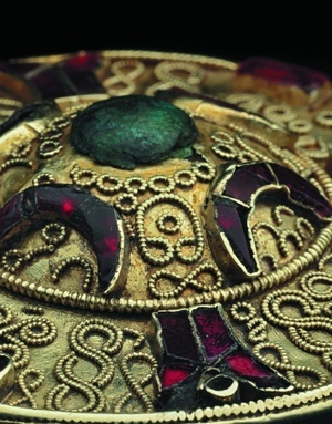 Fibel mit Almandin- und Glaseinlagen