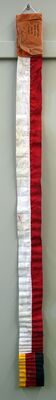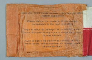 Der Zeppelinpost-Abwurfbeutel besteht aus einem Couvert in den Maßen 14 cm x 21,5 cm, an dem ein langes Band von ca. 2 Metern angeschlossen ist. Das Couvert ist aus Papier und beinhaltete mehrere Poststücke. Häufig handelte es sich bei diesen Poststücken um Sammlerpost, aber auch reguläre Poststücke wurden so versandt. Auf dem Couvert ist vermerkt, dass die Luftschiffpost am 28.07.1929 vom Luftschiff "Graf Zeppelin L.Z.127" über Speyer abgeworfen wurde. Das Band besteht zum Großteil aus einem zusammengenähten Stoff in den Signalfarben rot-weiß. So konnte der wachsartige Beutel aus Ölpapier zuverlässiger gefunden werden. Das Band schließt mit einem zusammengenähten Stoffband in den Farben des Deutschen Reiches mit aufgesetztem goldenen Posthorn, dem Symbol der Post im Allgemeinen. / "Am 28. Juli 1929 fand die 26. Fahrt des erst im Vorjahr in Dienst gestellten Luftschiffs LZ 127 Graf Zeppelin statt. Die Fahrt führte von Friedrichshafen (Aufstieg 07:30 Uhr) über Stuttgart - Pforzheim - Koblenz - Trier - Traben-Tranbach - Speyer - Kaiserslautern - Durmersheim - Landau i.d.Pf. - Bad Dürkheim - Wachenheim - Pirmasens - Freudenstadt - Bad Dürrheim und Eichsberg (St. Gallen) zurück nach Friedrichshafen (Landung 19:17 Uhr) bei einer Fahrtstrecke von 1108 km und einer Fahrtdauer von 11:47 Stunden. Über den geannten Orten wurde jeweils Post abgeworfen. Die Fahrt wurde als "Fahrt in das besetzte Rheinland" bekannt." [Moritz-Adolf Trappe]. / (Das HMP Speyer bedankt sich sehr herzlich für ergänzende und korrigierende Hinweise bei Herrn Moritz-Adolf Trappe vom Verein Zeppelinstadt Werdohl e.V.)