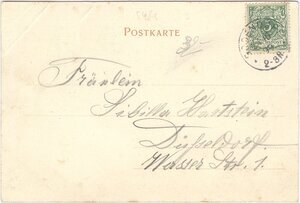 Karte im Querformat und SW-Druck. Auf der Vorderseite befindet sich das Empfängerfeld und eine 5 Pfg.-Briefmarke der Deutschen Reichspost. Die Karte wurde beschrieben von einem Gast und nach Düsseldorf verschickt verschickt. Die Rückseite zeigt mit vier mit Rebenumrandete historische Bilder den Ort Bodendorf. Oben links nach rechts den Bahnhof, Blick auf den Ort mit Kirche von Sonnenberg aus, die Ortseinfahrt von Bad Neuenahr aus und unter dem Bild vom Bahnhof das Hotel Restaurant Cholin.
