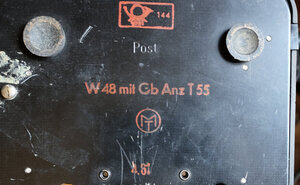 Der Tischfernsprecher „W 48 mit Gebührenzähler“, hat einen fest eingebauten Gebührenzähler. Er zählt die verbrauchten Gesprächseinheiten, die der Benutzer mit 20 Pfennige/Einheit bezahlen musste. Telefone in Privathaushalten gab es zu dieser Zeit nur wenige. Zum Ausgleich gab es in Poststellen, Gastwirtschaften, Geschäften usw. Telefone mit Gebührenzähler als Service, der korrekt abgerechnet werden konnte. Der Telefonapparat W 48 wurde für die Deutsche Bundespost von vielen, verschiedenen Herstellern in Lizenz gebaut.