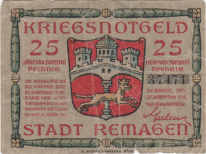 Kriegsnotgeld 25 Pfennig der Stadt Remagen 1918