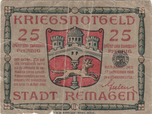 Kriegsnotgeld 25 Pfennig der Stadt Remagen 1918