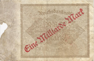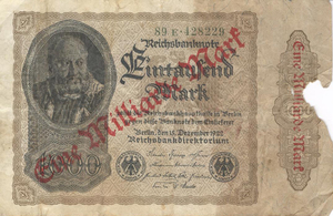 Reichsbanknote über Eine Milliarde Mark von 1922 mit Überdruckprovisorium