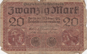 Darlehnskassenschein über zwanzig Mark von 1917