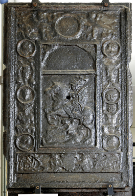 Ofenplatte mit dem Motiv von zwei der mythologischen Ofenplatte mit dem Motiv der Personifizierung der Tugenden Fides und Spes. Fides (lat. fidēs „Vertrauen, Treue, Glaube“) war in der römischen Religion die Personifikation des Vertrauens, der Treue und des Eides. Sie wurde auch unter dem Namen Fides Publica Populi Romani (etwa „allgemeine Vertrauenswürdigkeit des römischen Volkes“) verehrt. Fides wird als eine – gelegentlich mit einem Olivenzweig gekrönte –, einen Schleier oder Stola tragende junge Frau dargestellt. In ihren Händen hält sie Füllhorn, Schale, Ähren oder Fruchtkorb als ihre Attribute, oder auch eine militärische Standarte. Ihre Priester trugen weiße Kleidung und zeigten damit Fides’ Verbindung zu den höchsten Göttern des Himmels, Jupiter und Dius Fidius. Spes (lateinisch: ‚Hoffnung‘) ist eine geistliche Tugend und in der römischen Mythologie die Personifikation der Hoffnung, besonders auf Kinder und gute Ernte. Ihre Entsprechung in der griechischen Mythologie war Elpis. Quelle: Wikipedia oder Taken oder Kaminplatte mit der Darstellung nach der "Bella Giarinera" von Raffael Lothringen um 1840