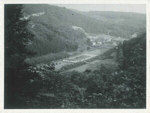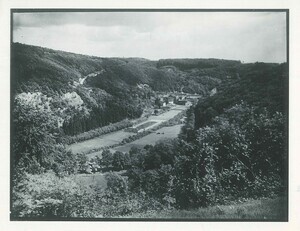 Farbfotografie. Reprint einer Fotografie der Kunstanstalt Dortmund (Archiv Nr. 332 Sehä 62, 21/87). Diese Aufnahme zeigt das Schwimmbad bzw. Freibad im Sayntal um 1960.