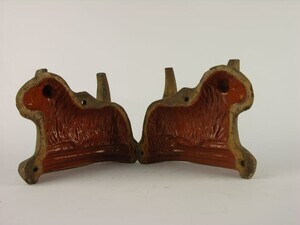 Außen plumpe, innen gut durchgebildete und glasierte Form, in Längsrichtung in zwei Hälften geteilt, die zusammengeschraubt werden konnten. Für das Aufstellen der Form zum Einfüllen der Masse befinden sich an der Oberseite der Tierform 4 Stützen, von denen die beiden vorderen gleichzeitig die Hörner des Tieres beinhalten.