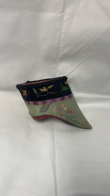 Amphora mit separatem anschraubbarem Fuß. Die Henkel sind aus jeweils zwei Schlangen gebildet, die mit Goldfarbe verziert sind. Der Gefäßkörper ist verziert mit Eierstab- und Wellendekor in Gold. Am Bauch ist ein Blumendekor aus verschiedenen Blumen wie Rosen, Lilien und Kornblumen. Ende 19. Jahrhundert.