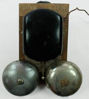W 28 als Wandgerät mit Metallgehäuse, einer gusseiserner Gabel und Bakelithörer. Zunächst von Siemes & Halke in einer Vorserie als "fg.tist.66.a.v." gebaut. Ab 1928, nach Zulassung durch die Deutsche Reichspost, wurde das W 28, als Tisch und Wandapparat, von nahezu allen deutschen Herstellern in Lizenz gebaut, Er war das Standardgerät der 20/30er Jahre. Anfänglich noch mit Lüftungsschlitzen, die später weggelassen wurden. Sie dienten der besseren Hörbarkeit der Klingel. Der abgebildete Apparat wurde von den Deutschen Telefonwerken, Berlin, im April 1935 hergestellt. Die zusätzliche Außenklingel, auf Holz montiert, trägt die Bezeichung "ZB 26" und "St? 03"