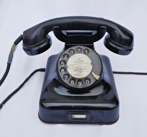 Der W 48 ist heute für viele Sammler zum Inbegriff des „alten Fernsprechers“ geworden. Der Tischfernsprecher W 48 war das zweite deutsche Nachkriegstelefon, das 1948 für die Deutsche Post entwickelt und in sehr großen Stückzahlen gefertigt wurde. Ab etwa 1950 produzierten fast alle westdeutschen Telefonhersteller den W 48 in Lizenz für die Deutsche Post, die das Gerät nicht verkaufte, sondern den Telefonkunden nur gegen eine mtl. Gebühr zur Verfügung stellte. Unser Modell wurde 1952 von der Fa. Mix und Genest produziert, zu einem späteren Zeitpunkt jedoch umgebaut. Die mechanischen Bauteile sind nicht auf einer Metall Grundplatte sondern auf einer Bakelit Grundplatte (braun) verbaut. Außerdem wurde das Telefon mit einem TAE Stecker versehen, so dass der Betrieb an einem analogen Anschluss der Telekom möglich war.