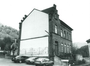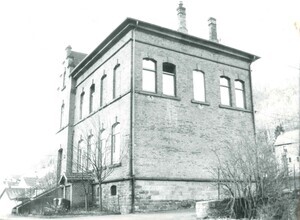 Schwarzweißfotografie. Diese Aufnahme aus dem Jahr 1913 zeigt Schülerinnen der Privaten Höheren Schule in Sayn kostümiert vor dem Sayner Casino stehend. Friedrich Krupp gründete im Jahr 1898 eine Höhere Schule in Sayn. Über das Schulgebäude gibt es keine genaueren Aufzeichnungen. Das Grundstück dazu lag zwischen der ehemaligen Provinzialstraße und der Kreisstraße von Sayn nach Engers.