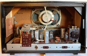 Der Saba "Triberg 125" wurde in den Jahren 1960-1962 in Villingen gebaut. Auf der Fronseite gibt es 5 Drucktasten für Ein/Aus, LW, MW, UKW sowie einer Taste für die Sprachverbesserung. Für einen angenehmen Klang sorgt ein großer, ovaler Lautsprecher. Auf der Rückseite sind Anschlüsse für Phono, Tonband und externe Lautsprecher vorgesehen. Bei unserem Gerät liegt im Innern noch die Röhrengarantiekarte, ein Schaltplan und eine Abgleichanleitung,