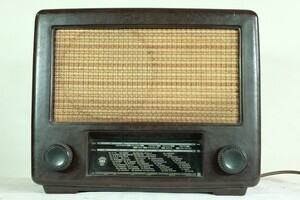 Obwohl die Firma Hagenuk in Kiel nie eine großer Player unter den Radioherstellern war, gelang ihr mit dem Standard Super ein großer Wurf. Das Gerät wurde 1947/1948 hergestellt und war weit verbreitet. Es handelt sich um ein mittelgroßes Tischgerät in schwarzer Optik. Auf der Vorderseite gibt es ausschießlich 2 Drehregler für "Ein/Aus" , "Laut/Leise" und die Sendereinstellung. Auf der rechten Seitenwand befindet sich ein Drehschalter zur Wahl der Wellenbereiche MW/KW und LW . Eine Besonderheit ist ein Kippschalter auf der Rückseite, mit dem die Klangfarbe von hell auf dunkel geschaltet werden kann. Anschlüsse gibt es für einen Plattenspieler und einen 2.Lautsprecher. Ein kompletter Schaltplan ist auf der Innenseite der Rückwand aufgedruckt. Verkauft wurde das Gerät 1947, also noch vor der Währungsreform, für ca. 460,00 Reichsmark