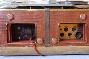 Das Sabaphon, ein solide gebautes Gerät in 4 Spur Technik mit autom. Bandabschaltung. Das Gerät verfügt über einen eingebauten Lautsprecher. Der Spulendurchmesser beträgt max. 15 cm. 3 verschiedene Bandgeschwindigkeiten sind möglich. 4,75/9,5 und 19cm. Über Drucktasten werden die Aufnahme, Start/Stop, und schneller Vor/Rücklauf gesteuert. Auf der Stirnseite ist ein Anschluss für externe Lautsprecher. Auf der Rückseite sind 2 Stauräume, von denen eines dem Stromkabel vorbehalten ist. In dem Rechten sind die Anschlüsse für die Eingänge Micro, Radio und Phono sowie der Ausgang und der Anschluss der Fernbedienung. Der Anschaffungspreis lag 1961 bei ca. 750 DM