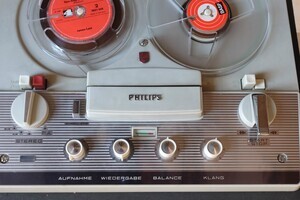 Bei dem Tonband Philips RK 36 EL 3547 A/22A handelt es sich um ein volltransistorisiertes 4 Spur Stereo Gerät mit 2 Bandgeschwindigkeiten.4,75 + 9,5 cm/sek Der max Spulendurchmesser liegt bei 15 cm. Eingebaut sind Lautsprecher von 2x 3 W. Das Gerät ermöglicht eine Dia Vertonung und verfügt über Eingänge für Micro, Phone, und TB, Neben einem Ausgang gibt es noch einen Anschlüss für Stereo Laussprecher.Lautspr R+L. Der damalige Ladenpreis lag bei ca. 600 DM Hergestellt wurde das Tonbandgerät von 1962 bis 1964