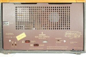 Das Modell "Siemens Qualitätssuper 51 SH607W" wurde 1950 in den Markt gebracht und bis einschl 1951 produziert. Es fällt ins Auge, dass auf der Frontseite keinerlei Bedienungselemente vorhanden sind. Lediglch die Stationsanzeige und ein Magisches Auge sind sichtbar. Die Drehknöpfe zur Bedienung befinden sich an der rechten Seitenwand. Mit dem oberen Drehknopf ist der Wellenbereich wählbar, darunter die Senderwahl. Auf der linken Seitenwand befindet sich der Ein/Aus Knopf kombiniert mit der Lautstärke. Angeschlossen werden können Plattenspieler, Tonband und ext. Lautsprecher, sowie Antenne & Erde.