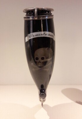 Tasse mit Untertasse mit Weinlaubdekor und der Abbildung des Hambacher Schlosses mit einer Festversammlung. Dekor und Bild sind mit einem unter der Glasur liegenden Kupferumdruckverfahren aufgebracht. Inschrift. °HAMBACH SCH°. Die aufgehende Sonne hinter dem Schloss erinnert jeweils an die mit dem Hambacher Fest verbundene Hoffnung auf einen politischen Neuanfang. Die Darstellung des Hambacher Schlosses auf Alltagsgegenständen diente der Erinnerung und darf zudem als privater Protest gegen die herrschenden Verhältnisse in der Restaurationszeit nach 1832 gewertet werden. Mit der gekürzten Bezeichnung °HAMBACH SCH° wollten die Hersteller möglicherweise etwaigen Zensurauflagen entgegenwirken. [Ludger Tekampe]