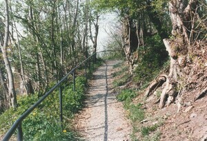 Farbfotografie. Diese Aufnahme zeigt einen Blick auf den Hang bei den Rostschachtöfen der Grube Werner, auf der Vierwindenhöhe in Bendorf, während der Sanierungsmaßnahmen im Jahr 1997. Im April des Jahres 1724 erhielten der Bendorfer Hüttenmeister Wilhelm Remy, der Kammerverwalter Wirtzen zu Hachenburg und der Kanzleidirektor Grün vom damaligen Landesherren von Bendorf, dem Fürsten von Sachsen-Eisenach, die Genehmigung in der Gemarkung Bendorf Eisenstein zu brechen. Der Bendorfer Eisengrubenbetrieb lag mit seiner Hauptwerkanlage auf der Vierwindenhöhe und trug die Bezeichnung "Grube Werner", weitere Stollen befanden sich auf der Loh, im Wenigerbach- und im Brexbachtal sowie auf dem Eisenberg. Aus diesen Stollen wurde fast 200 Jahre lang Erz gefördert. Um das Jahr 1890 waren insgesamt rund 250 Bergleute beschäftigt. Die Erzgrube Werner wurde im Jahr 1915 geschlossen und war zuletzt im Besitz der Firma Krupp in Essen. Alfred Krupp hatte sie 1870 von der Firma Remy, Hoffmann & Co. erworben. Die Eisenerz-Röstöfen der ehemaligen Grube Werner sind in der Form die einzig erhalten gebliebenen Zeugen einer vergangenen Bergbau-Epoche in Deutschland. Im Jahr 1983 unter Denkmalschutz gestellt und von 1990 bis 1998 komplett restauriert und saniert, präsentieren sie sich heute mit der integrierten Freilichtbühne als kulturhistorische Attraktion.