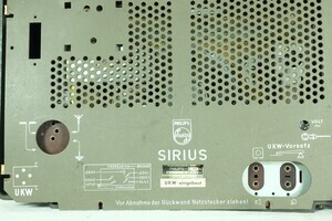 Philips baute 1950/1951 das große Tischgerät mit Namen "Sirius". Eine optische Besonderheit für den heutige Betrachter, die Senderstationen liegen oberhalb des Lautsprechers. Alle Einstellungen erfolgen mittels Drehschalter an der Frontseite. Langwelle, Mittelwelle, mehrere Kurzwellenbänder plus UKW (FM). Angeschlossen werden können Plattenspieler und Zusatzlautsprecher. Der Originalpreis lag 1950 bei ca. 300 DM