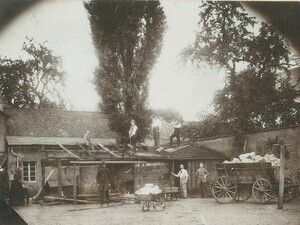 Schwarzweißfotografie aufgeklebt auf einer Pappe. Dieses Bild zeigt einen Speisesaal der Wasserheilanstalt "Villa Rheinau" in Bendorf, ein damals weltbekanntes Sanatorium. Die gepflegten Park- und Sportanlagen verliefen fast bis zum Rheinufer. Das Haus mit seiner komfortablen Inneneinrichtung wurde von Patienten aus dem In- und Ausland aufgesucht. Friedrich Albrecht Erlenmeyer ist mit seinem langen Bart sitzend auf dem Foto hinten rechts zu erkennen. Es handelte sich bei dem Gebäude um das 1866 gegründete ehemalige Sanatorium des Geheimrats und Nervenarztes Dr. Adolph Albrecht Erlenmeyer (1822-1877). Erlenmeyer lebte seit 1846 als praktizierender Arzt in Bendorf und gründete 1848 das "Asyl für Gemüts- und Nervenkranke". In den Gebäuden sind heute die beiden Rathäuser der Stadt Bendorf untergebracht. 1866 erwarb er zusätzlich in unmittelbarer Rheinnähe die "Villa Rheinau", wo Kranke in Begleitung von Verwandten sich einmieten konnten. Im Jahre 1873 übergab Adolph Albrecht Erlenmeyer die Leitung der "Villa Rheinau", als Sanatorium für Nervenkranke an seinen Sohn Friedrich Albrecht Erlenmeyer (1849-1926). Nach dessen Tod kam der medizinische Betrieb zum Erliegen. In den 1930er-1940er Jahren wurde die Villa zu einer Kaserne für eine Hundertschaft der motorisierten Polizei (die "weißen Mäuse") umfunktioniert. Seit dem Zweiten Weltkrieg wurde das Gebäude zu Wohnzwecken genutzt. Heute ist es Sitz der Firma Schall Baumanagement GmbH.