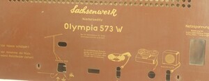 Im VEB Sachsenwerk Niedersedlitz wurde zwischen 1956 und 1957 das Radio "Olympia 573 W" hergestellt. Das gut erhaltenes Tischgerät wird über die Drucktasten "Aus", "Tonabnehmer" und die Wellenbereiche gesteuert. Die Drehköpfe an der Vorderseite bedienen die Lautstärke, die Klangfarbe und die Sendereinstellung. Auf der Senderskala findet sich für MW ein extra Block, in dem vorwiegend Ostdeutsche Sender angegeben sind. Rückseitig gibt es Anschlüsse für Plattenspieler, Tonband und für externe Lautsprecher.