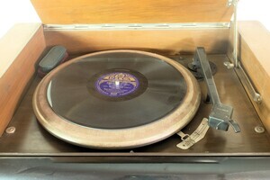 Ein Vorkriegsmodell (1939) von Telefunken mit eingebautem Plattenspieler. Das wuchtige Gehäuse hat fast die Form eines Würfels mit mehr als 40cm Kantenlänge. Die Frontseite ist im oberen Drittel zu Gunsten der Senderskala, horizontal geteilt. Unterhalb der Skala, hinter einem Stoffbezug, ist der Lautsprecher untergebracht. Ebenfalls an der Frontseite, im unteren Bereich, sind rechts und links schwarze Drehknöpfe, mit denen das Gerät bedient wird. Zum Ein/Ausschalten wird der linke, innere Knopf herausgezogen. Der seitliche angebrache Drehknopf dient der Wahl der Wellenbereiche bzw des Plattenspielers. Unter dem Deckel des Radios befindet sich ein Telefunken Plattenspieler. Es können nur Platten mit einer Geschwindigkeit von 78 Upm abgespielt werden. Auf der Rückseite ist der Röhrenplan aufgedruckt.