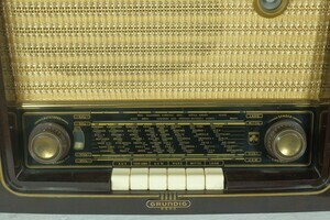 Gebaut wurde das Gerät zwischen 1952 und1953 von der Fa. Grundig. Es besteht vollständig aus sdchwarzem Bakelit und verfügt über sechs Drucktasten sowie 2 Drehregler für Lautstärke, Senderwahl und Klangfarbe. Drei eingebaute Lautsprecher sorgen für einen ordentlichen Klang. Rückseitig gibt es Anschlüsse für Tonband/Plattenspieler und Zweitlautsprecher. Außerdem ist auf der Rückwandinnenseite der Röhrenplan aufgedruckt. Ein Käufer musste 1952 rund 250 DM für das Radio bezahlen.