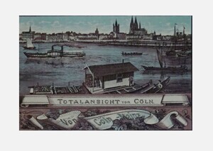 Neuestes Rheinpanorama von Mainz bis Cöln mit Leporello in Zweifarbendruck, um 1900. Photolithographie von Wilhelm Schütz, großherzogliche S. Hofbuchbinderei und Albumfabrik Eisenach.