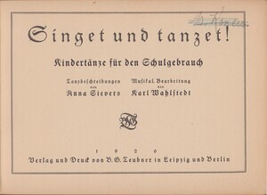 Liederbuch mit 30 Kindertänze für den Schulgebrauch. Die Autoren sind Anna Sievert und Karl Wahlstedt.