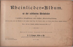 Rheinlieder-Album mit vierzig Liedern für Mittelstimme und mit leichter Klavierbegleitung. Die Lieder sind mit Noten abgedruckt. Am Ende des Liederbuches finden sich acht Lieder ohne Noten.