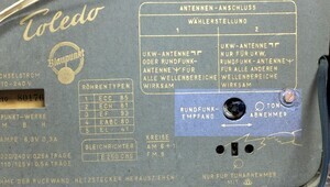 Kleines, kompaktes Tischgerät von Blaupunkt. Aus den Jahren 1954/1955. Das Chassis ist aus Holz, die Frontseite vollständig aus Bakelit gefertigt. Der Lautsprecher befindet sich hinter schräg stehenden Bakelit Lamellen. Rechts und links neben der Senderskala sind zwei Drehregler, für Lautstärke, Klangfarbe und Senderwahl . An Wellenbereiche stehen WM/LW und UKW zur Verfügung. Eine Besonderheit ist auf der Rückseite. Mittels Kippschalter kann wahlweise auf Rundfunkempfang bzw. Plattenspieler umgestellt werden. Der Ladenpreis 1954 war 150 DM