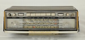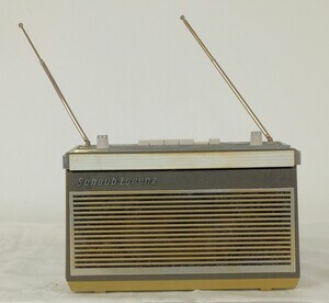 Ein kleineres Reisegerät das netzunabhängig und, mit entsprechendem Zubehör, auch als Autoradio betrieben werden kann. Zur Verfügung stehen die Wellenbereiche UKW/MW/LW und KW, die durch Tastendruck geschaltet werden. Zwei schwenkbare Teleskopantennen ergänzen die eingebaute Rahmenantenne und sorgen für einen erstklassigen Empfang. Externe Geräte wie Plattenspieler, Tonband- oder Kasettengerät können ebenso angeschlossen werden wie Kopfhörer , Zeitlautsprecher oder ein Netzgerät.