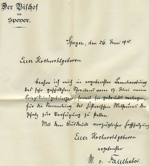 Schwarz/weiß Aufnahme Originaltitel: "Bischof Dr. Faulhaber im Schützengraben an der Westfront"; Gruppenporträt mit dem Speyerer Bischof Faulhaber (2.v.r.).