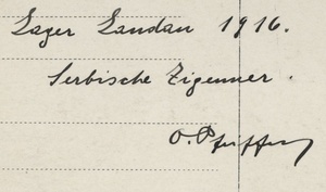 Schwarz/weiß Aufnahme Gruppenporträt Rückseite: "Lager Landau 1916. Serbische Zigeuner. (...)"