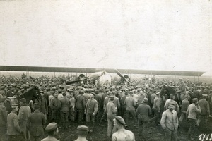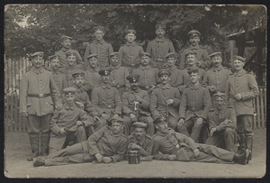 Karte im Querformat. Auf der Vorderseite: Schwarz/weiß Gruppenportrait von Soldaten, die um eine Granate herum aufgebaut sind. Vor ihnen steht ein Schild, auf dem geschrieben steht: "Wer weiss ob wir uns wiedersehn. Weltkrieg 1914". Auf der Rückseite: Adressat: "Soldat / Ludwig Steigerwald / 2. Rekruten Depot / Zimmer Nr. 37 / in Landau / 18. Inf. Reg.", Stempel: "Metz / 8.1.15 9-10V." sowie handschriftlicher Text. Transkription: "Feldpost / Metz, 7. Januar 1915 (...) die besten Grüse / aus weiter Ferne / sendet dir dein (...) Karl. Wie / geht es dir? Hoff - / endlich noch gut, was auch bei mir / der Fall ist. Wir / sitzen soeben beim Feste des Geburstag unseres (...)ersten Kriegs (...) Ludwigs (...) beisammen (...) viele Grüße auf baldiges Wiedersehen (...)". Im Historischen Museum der Pfalz war vom 29.4.2014 bis 24.9.2017 die Ausstellung "1914 - 1918. Die Pfalz im Ersten Weltkrieg" zu sehen. Auf einen öffentlichen Aufruf hin meldeten sich zahlreiche Privatpersonen, ihre Objekte wurden in dieser Sammlung erfasst und z. T. auch in der Ausstellung gezeigt. Die Objekte befinden sich im Eigentum der Privatpersonen und sind nicht Teil der Sammlungen des Historischen Museums der Pfalz.