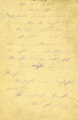 Karte im Querformat. Auf der Vorderseite: Adressvordruck, Anschrift: "Frl. Elise Schultz / St. Martin / Rh. Pfalz", Absender: "Gefr. / Mich. Schultz / Ldw Inf 4 / Abteilung III / Unterstab", Stempel 1: "Feld-Post / 30.4.17", Stempel 2: "(...)". Auf der Rückseite: handschriftlicher Text. Transkription "29. 4. 1917 / (...)" Im Historischen Museum der Pfalz war vom 29.4.2014 bis 24.9.2017 die Ausstellung "1914 - 1918. Die Pfalz im Ersten Weltkrieg" zu sehen. Auf einen öffentlichen Aufruf hin meldeten sich zahlreiche Privatpersonen, ihre Objekte wurden in dieser Sammlung erfasst und z. T. auch in der Ausstellung gezeigt. Die Objekte befinden sich im Eigentum der Privatpersonen und sind nicht Teil der Sammlungen des Historischen Museums der Pfalz.