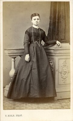 Eine Genreszene, die eine Mutter mit ihrer Tochter zeigt. An einer dunklen Hauswand sitzt die Frau auf einem gekachelten Steinsockel. Sie trägt eine grünliche Weste, ein blaues Halstuch, ein dunkelrotes Kleid mit dunkler Schürze. In der rechten Hand hält sie ein Zeugnis. Vor ihr steht ein Mädchen, das sich die Augen reibt und weint. Dieses ist mit einem weissen Häubchen, einer blauen ärmellosen Weste mit hochgekrempelten Ärmeln, einem dunklen Kleid und einer ockerfarbenen Schürze bekleidet. Ihr ockerfarbenes Halstuch ist vor der Brust verknotet. Auf dem Boden steht ein Henkelkorb in dem sich Hefte und Schriftstücke mit der Aufschrift "Newe Väter dere ..." befinden. Signiert ist das Bild unten: Speyer. Mander 1684 J. G. Dathan.