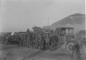 Schwarz/weiß Gruppenaufnahme von Soldaten im Gasthaus von Monhofen am 6. Dezember 1917 Fotograf: Michael Schultz Im Historischen Museum der Pfalz war vom 29.4.2014 bis 24.9.2017 die Ausstellung "1914 - 1918. Die Pfalz im Ersten Weltkrieg" zu sehen. Auf einen öffentlichen Aufruf hin meldeten sich zahlreiche Privatpersonen, ihre Objekte wurden in dieser Sammlung erfasst und z. T. auch in der Ausstellung gezeigt. Die Objekte befinden sich im Eigentum der Privatpersonen und sind nicht Teil der Sammlungen des Historischen Museums der Pfalz.